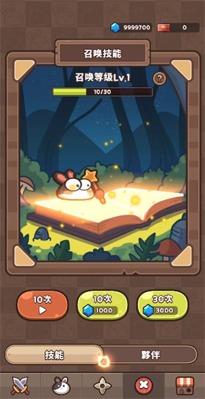 5、点击宝箱按钮可以消耗钻石到来抽提取技能与伙伴,每次抽提取可以获得的技能与伙伴都正确随机的。